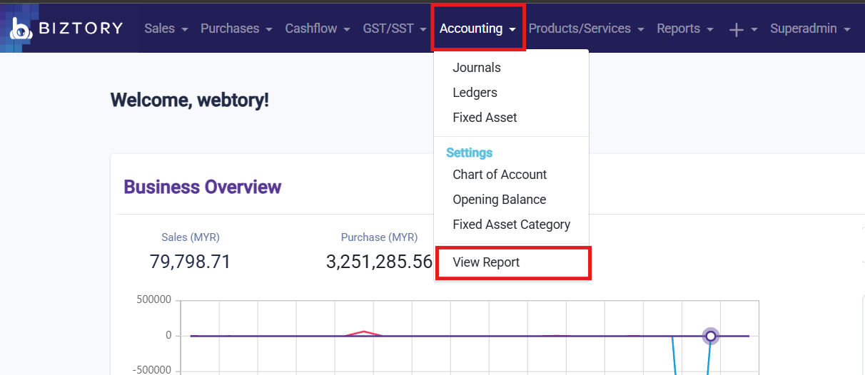 1. Click on Accounting and select "View Report".