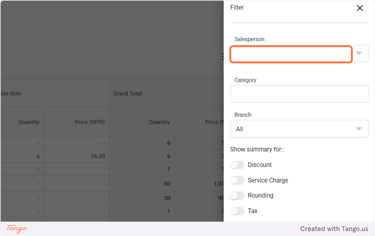 7. Filter the salesperson