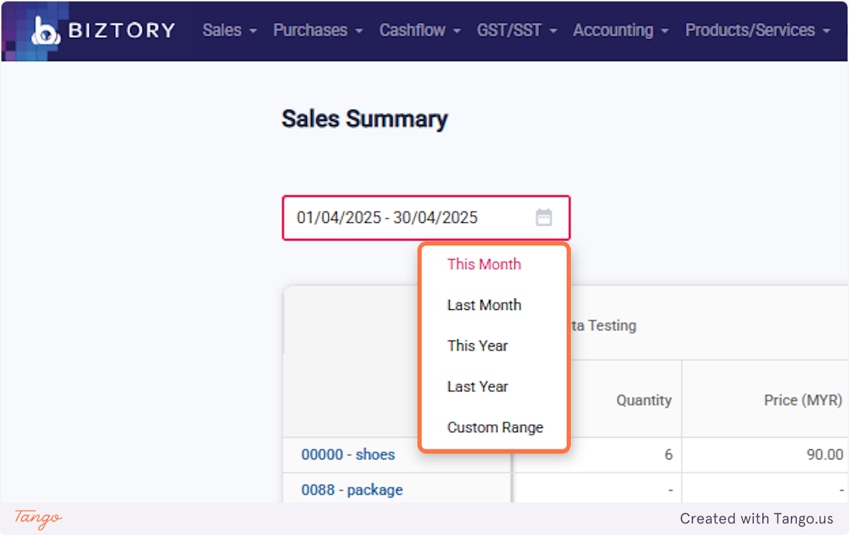 3. Set the date range to view products in that period