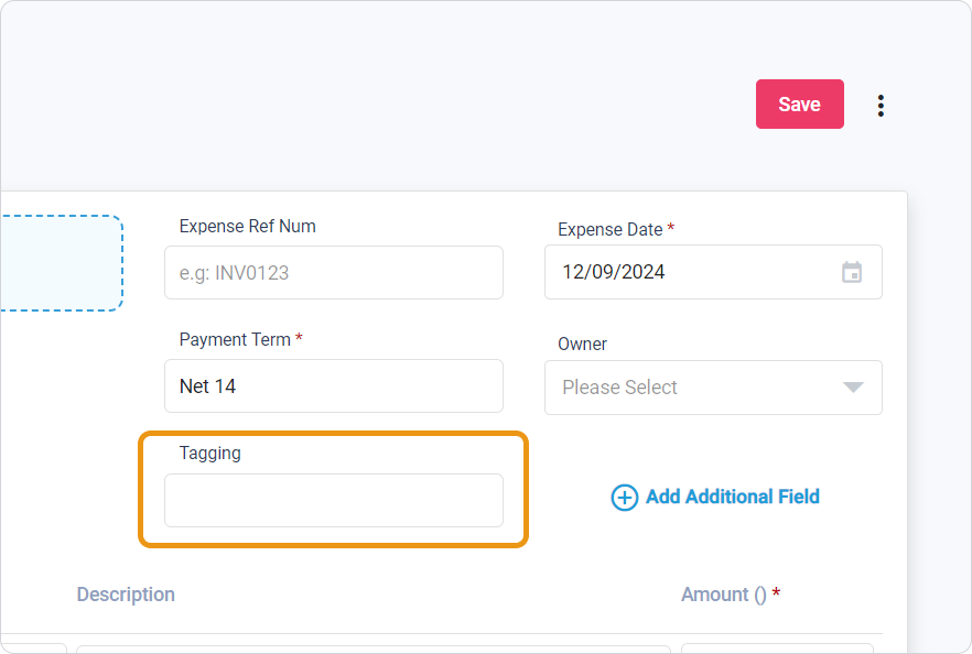 3.3. Click on tagging to add a tag for this Expense