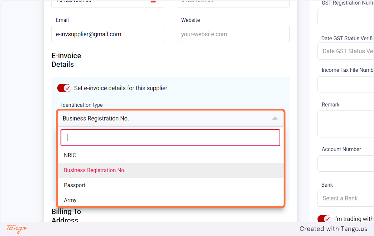 Thirdly, ensure that you have set e-invoice details and basic details for your supplier