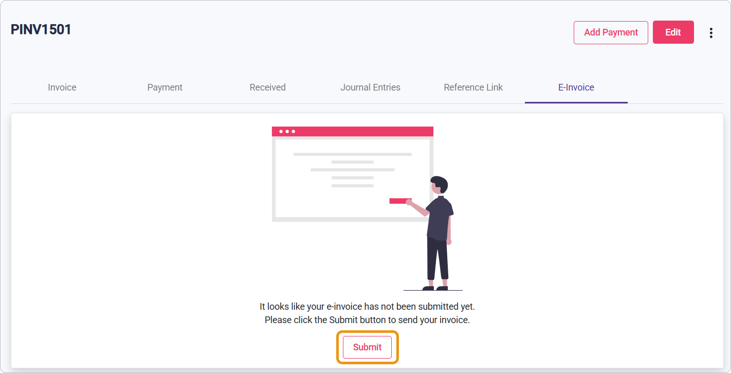(If Auto Submit to E-Invoice is enabled, this will not appear. If you see this, please wait for a few seconds and refresh.)