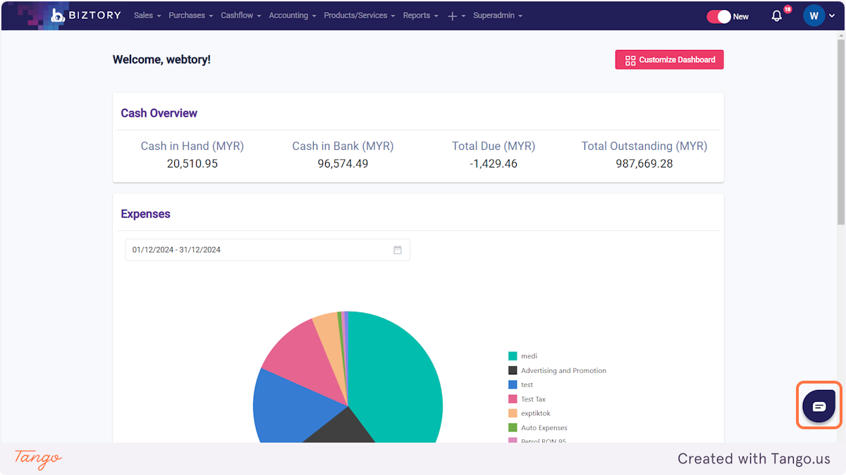 Biztory Cloud Accounting system’s dashboard able to give you an overview of the reports and metrics you care about most. Dashboards let you monitor many metrics at once, so you can check the business performance and statistics.