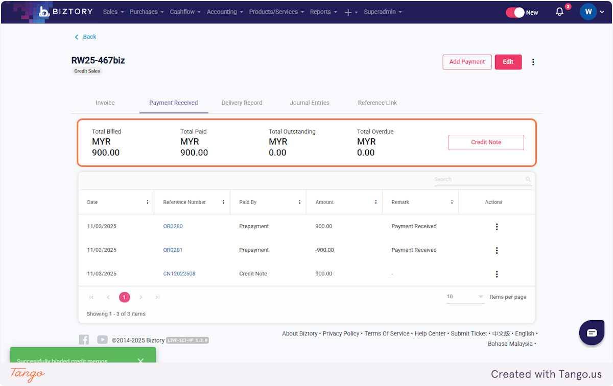 How to Apply a Credit Note When Invoice Has Been Fully Paid - Carcarcar (New Vers.)