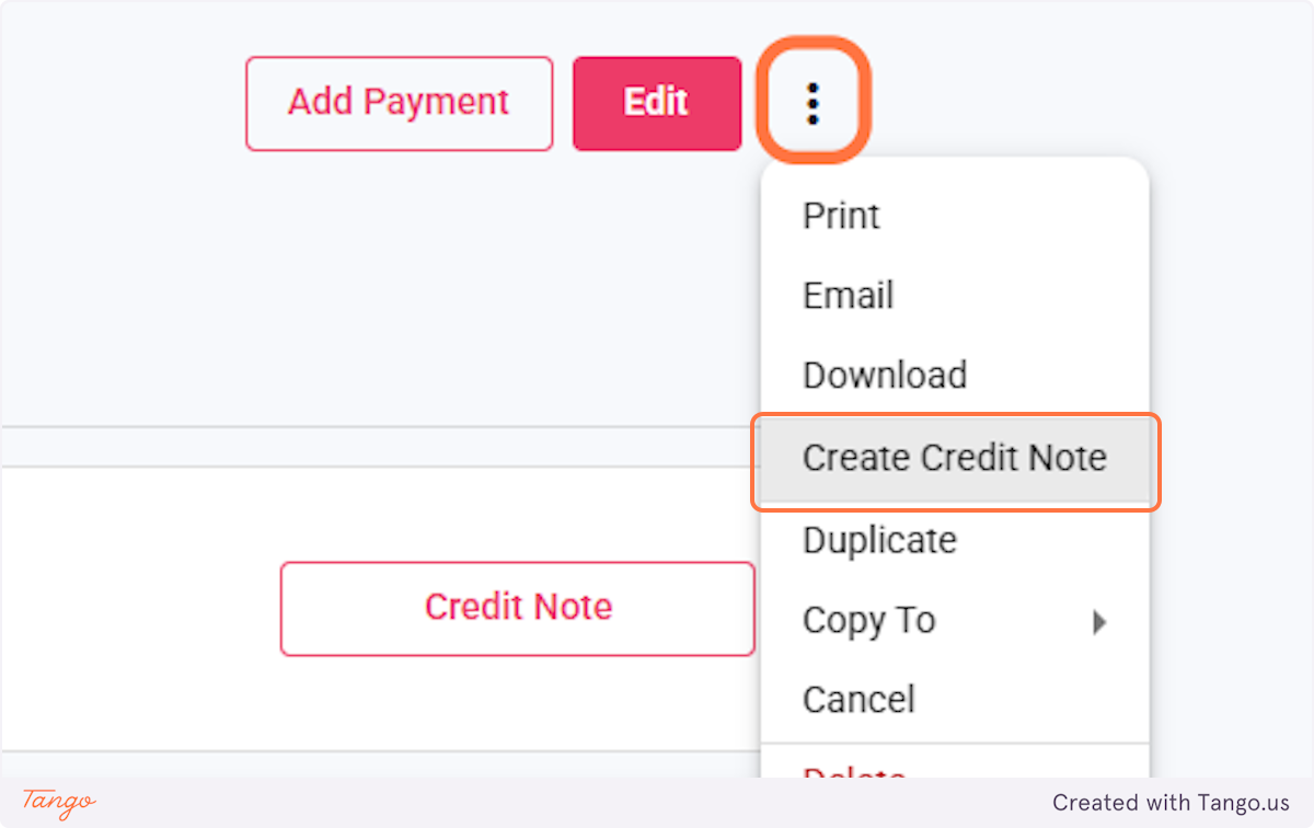 4. Click the 3 dots and select 'Create Credit Note'