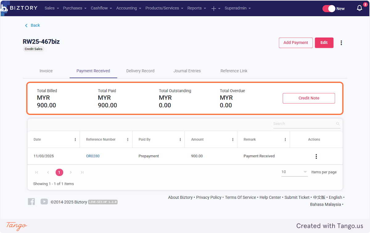 3. However to apply a Credit Note, the invoice must be unpaid