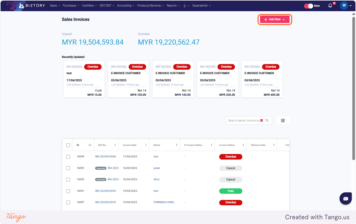 31. Click on Sales Invoices