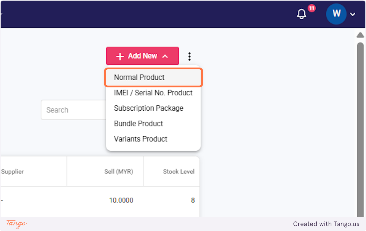 3. Click on Normal Product