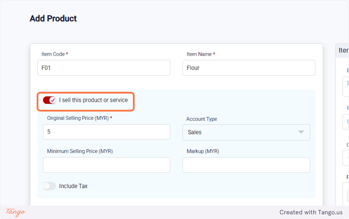 How to record the Product for selling