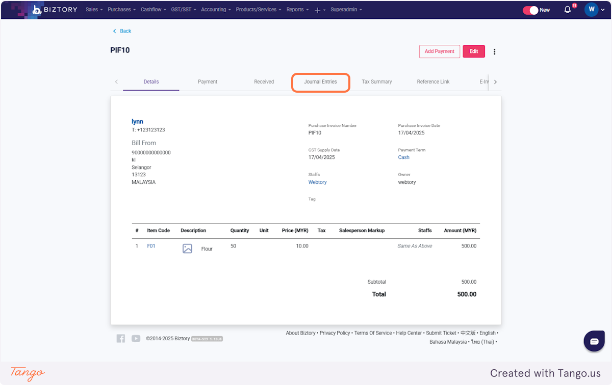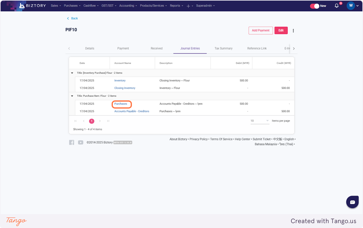 13. Click on Journal Entries