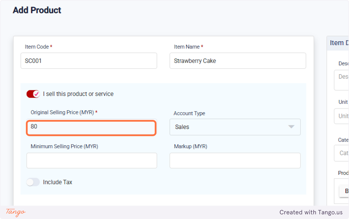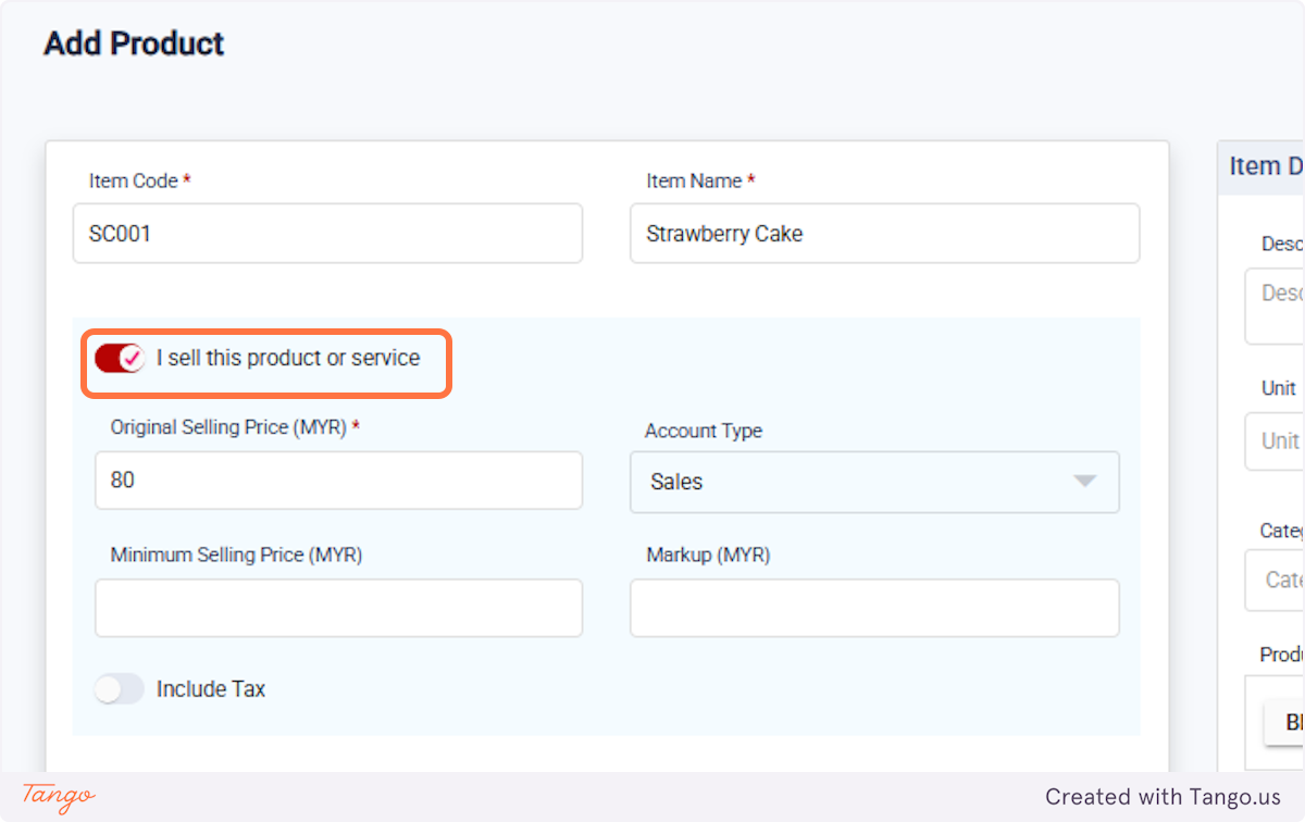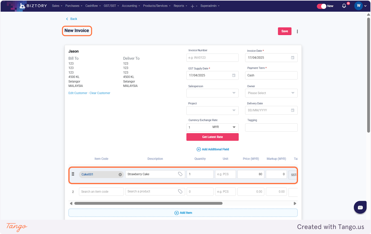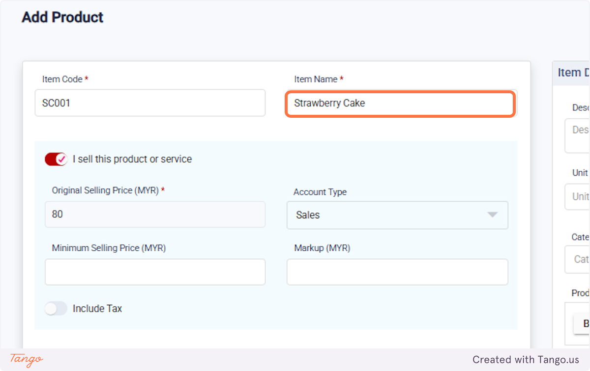 18. Create a new product under Products/Services, for example, "Strawberry Cake".
