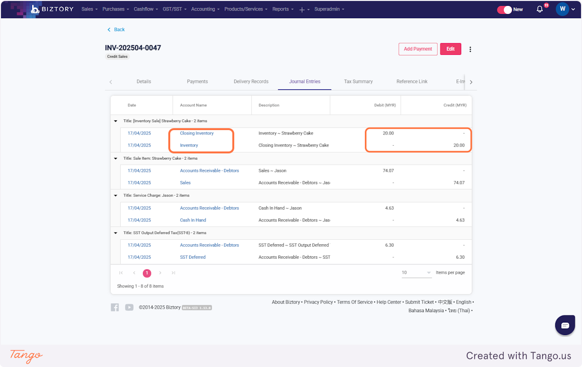 34. Click on the sales invoice