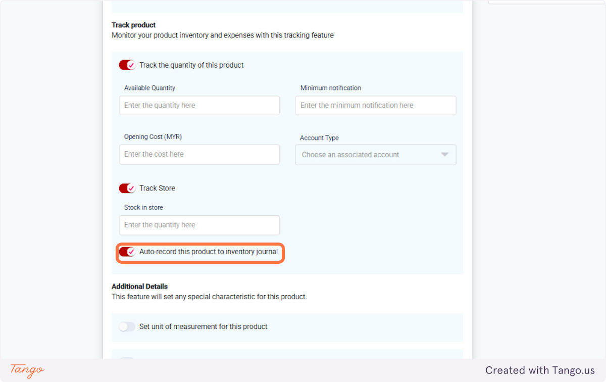 7. Enable 'Auto-record this product to inventory journal'