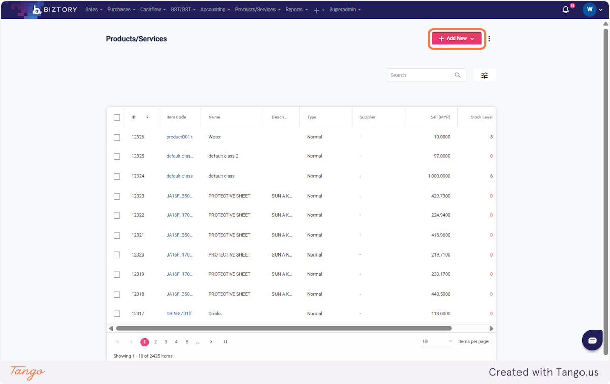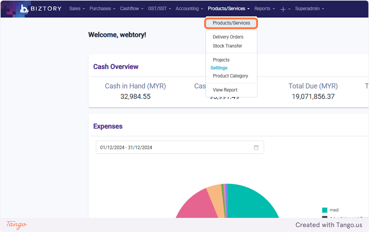 15. Click on Products/Services and select 'Products/Services'