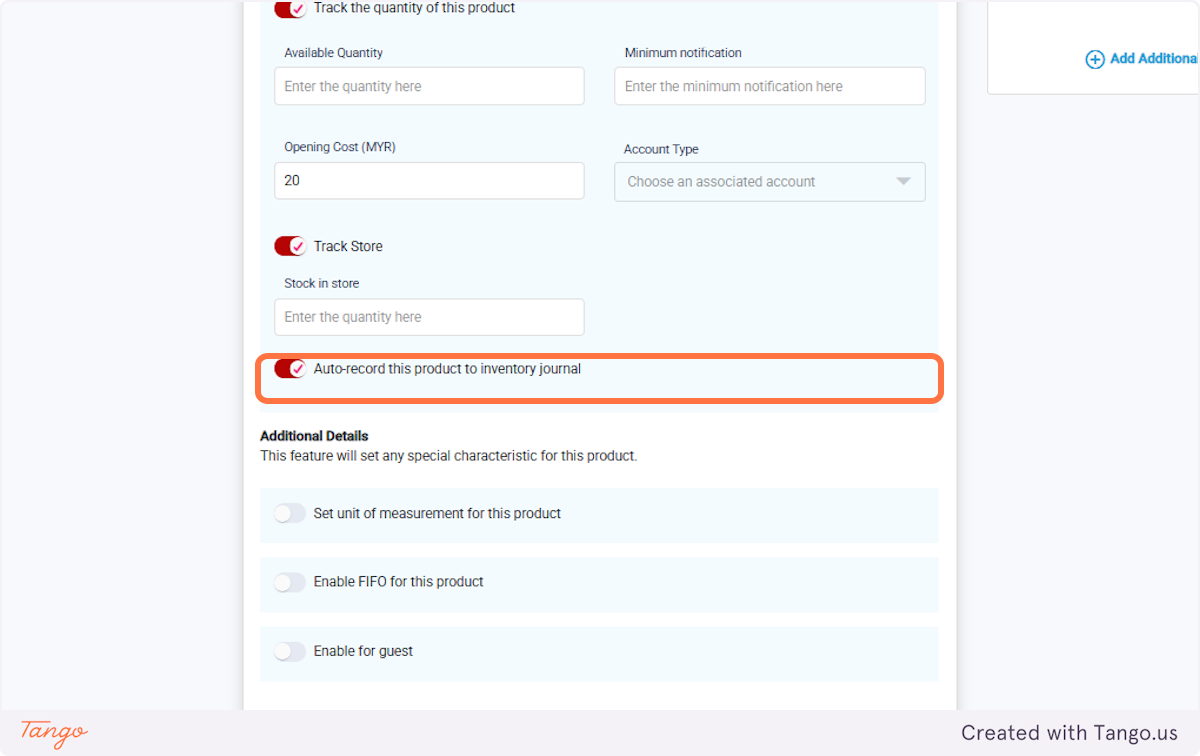 23. Enable 'Auto-record this product to inventory journal'