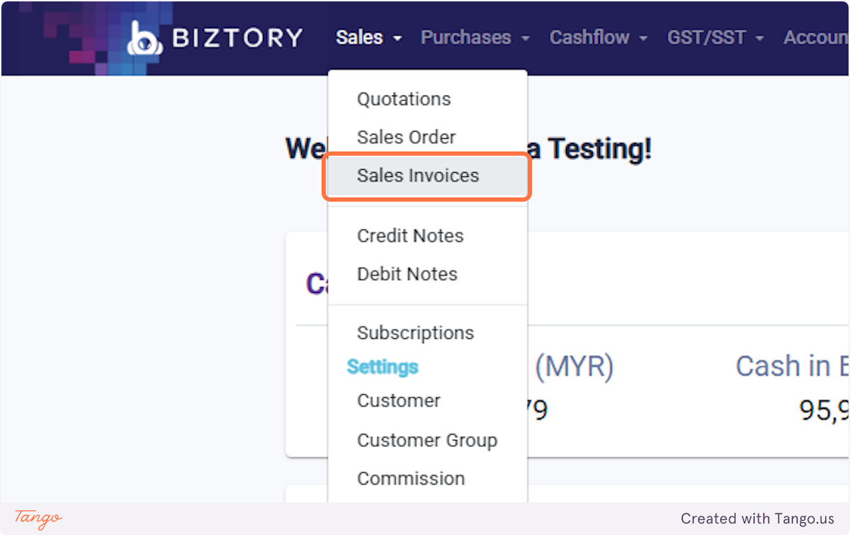 1. Click on Sales and select 'Sales Invoices'